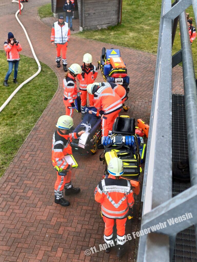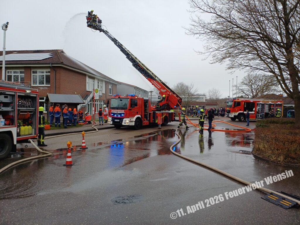 In der Schule wurden nach Auslösung der Brandmeldeanlage und Alarmierung der Einsatzkräfte etliche Kinder vermisst. Die anrückenden Kräfte der Feuerwehren aus Schlamersdorf, Hornstorf, Berlin, Travenhorst, Nehms, Nehmten und Trappenkamp begannen mit der Menschenrettung und dem Aufbau der Wasserversorgung aus den umliegenden Löschbrunnen. Unterstützt wurde die Übung durch Auszubildene der Rettungsdienstes, welche mit drei Einsatzfahrzeugen die Patientenversorgung übernahm.