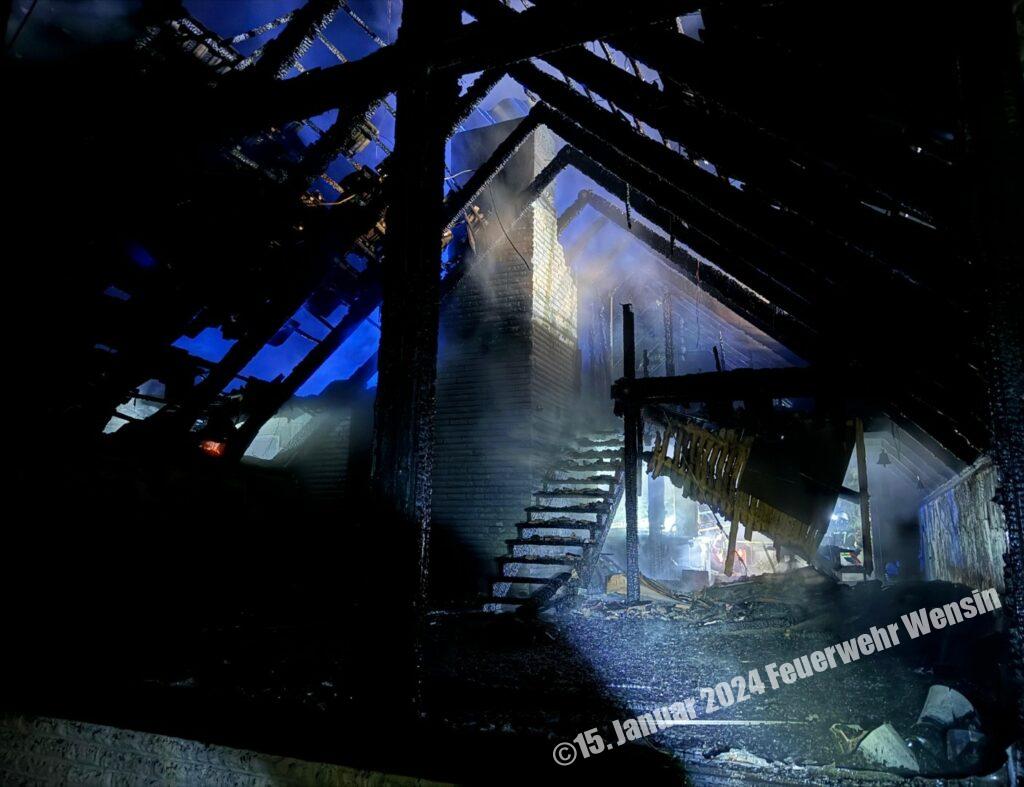 Die Anwohner könnten sich selbst in Sicherheit bringen und wurden zur weiteren Versorgung in ein Krankhaus eingeliefert. Der Dachstuhl des Gebäudes brannte vollständig aus, ein Übergreifen auf benachbarte Häuser konnte durch die Einsatzkräfte verhindert werden.