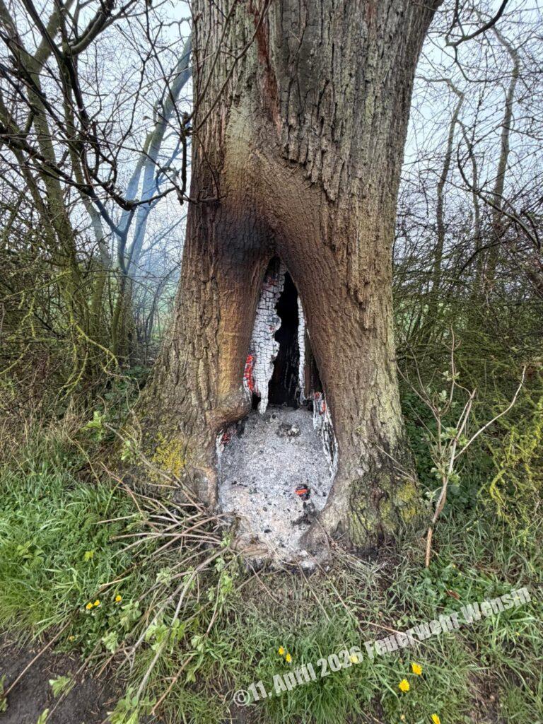 Wir wurden zur Nachkontrolle eine Brandes an einem Baum auf Gut Wensin alarmiert, dort hatte es im Inneren eines Baumes gebrannt. Der Eigentümer hatte bereits Löschversuche in Eigenregie eingeleitet.