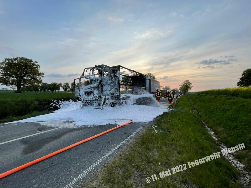 Die Wehr wurde unter dem Stichwort „FEU G“ zu einem Lkw-Brand auf der K1 bei Travenort alarmiert. Nach Eintreffen stand dieser bis auf den Anhänger bereits im Vollbrand. Der Lkw war unbeladen, der Fahrer konnte das Fahrzeug abstellen und sich in Sicherheit bringen. Die Löschmaßnahmen zeigten nach kurzer Zeit Wirkung, sodass frühzeitig nicht benötigte Kräfte aus dem Einsatz entlassen werden konnten.