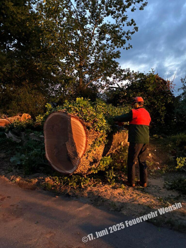 Wir wurden zu einem umgestürzten Baum nach Wegekaten gerufen, um dort die örtliche Feuerwehr zu unterstützen. Eine alte Eiche war umgefallen und hatte einen Gatterverschlag beschädigt. Zusammen mit den Feuerwehren aus Krems 2 und Rohlstorf wurde der Baum stückweise zersägt und mit Hilfe eines Radlagers bei Seite geschafft.