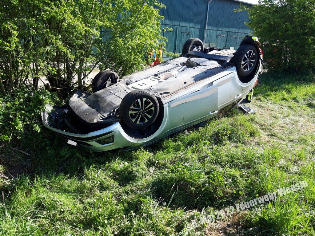Alarmierung zu einem Verkehrsunfall auf der B432 Richtung Gnissau. Ein Pkw hatte sich überschlagen und war auf dem Dach gelandet. Die Person wurde von den alarmierten Einsatzkräften aus den Gurt und dem Fahrzeug befreit und dem Rettungsdienst übergeben.