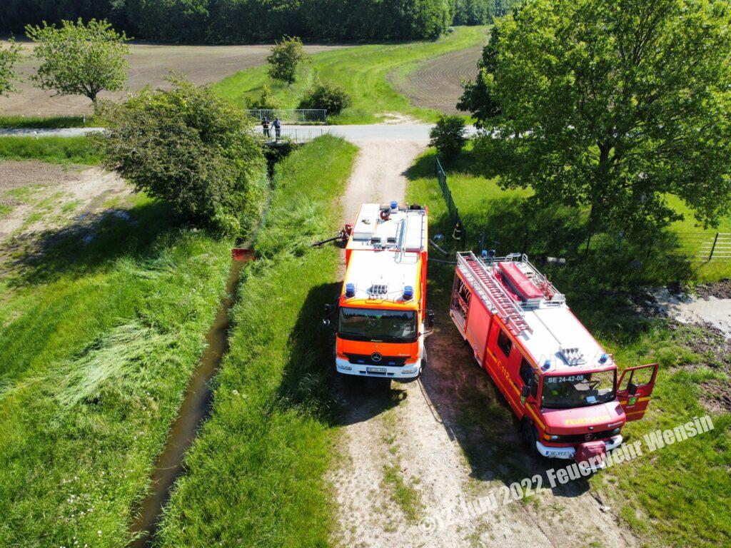 Am Samstag, 10.06.22, hat die Feuerwehr Wensin ihr neues Fahrzeug in Dienst gestellt. Freiwillige der Wehr verstauten die vorhandene Beladung des LF 8 in das neue als LF 10 fahrende Löschfahrzeug und baute die Funkanlage um. Das vorher von der FF Garstedt genutzte Fahrzeug wurde 2002 gebaut, hat eine fest eingebaute Pumpe im Heck, einen 1800l Löschwassertank sowie einen pneumatischen Lichtmast und einen Dachmonitor (Wasserwerfer).